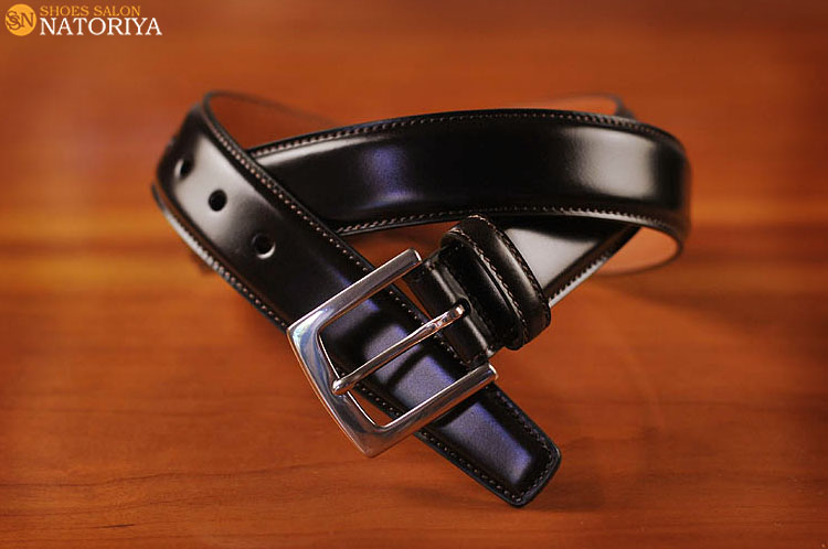 3ピースタイプ構造で堅牢な作りとなっています。表面の磨きもハイクオリティーでコードバンらしい美しい艶感を実現しています。ライニングにも牛革を使用しておりますので、パンツを傷める心配も少ないです。バックルは、鏡面仕上げされたブラス素材一体型デザイン。シルバー色で統一されています。主張し過ぎない控えめなデザインだからこそ長く愛用したくなる優れたデザインは気に入って頂けるはずです。