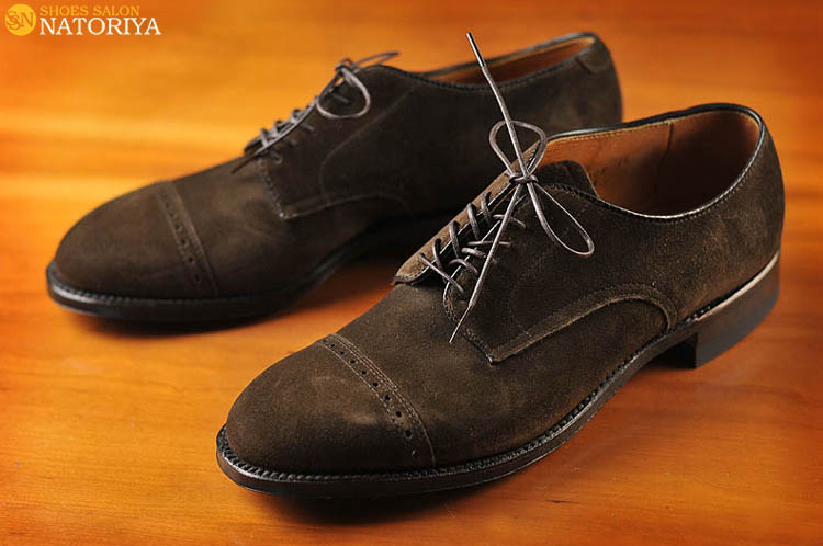 4年半ぶりに入荷したバリーラスト仕様チャッカブーツのSnuffスエードモデルが入荷しました。プランテーションクレープソールを使用したラグジュアリーな履き心地が魅力の一足です。踵部分のみ表革を使ったアクセントにも注目したい作品ですね。続いては、1年半ぶりの入荷と、これでも割と早い生産となったのが55992FクォーターブローグのHUMMUSスエードです。ダークブラウンよりもカーキっぽいニュアンスで、履き込むと少しずつカーキが強めに表現されてくるので、変化が楽しい作品です。ミリタリーな格好にも意外に合うモディファイドOXです。そして、新作53504は、同じくモディファイドラストを使ったSuffスエードプレーントゥです。噛み煙草という意味だそうで、大人の遊び心を感じさせてくれる色名にもクラッと来てしまうのです。<10月31日掲載>