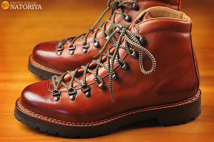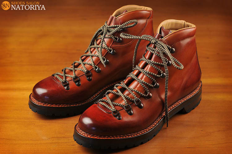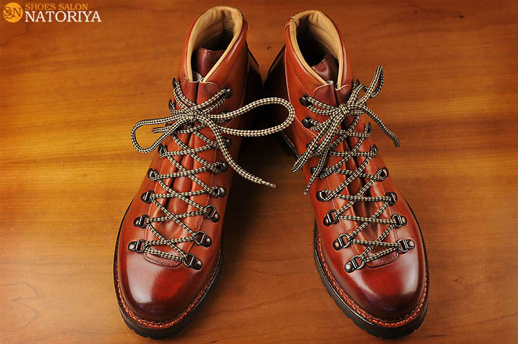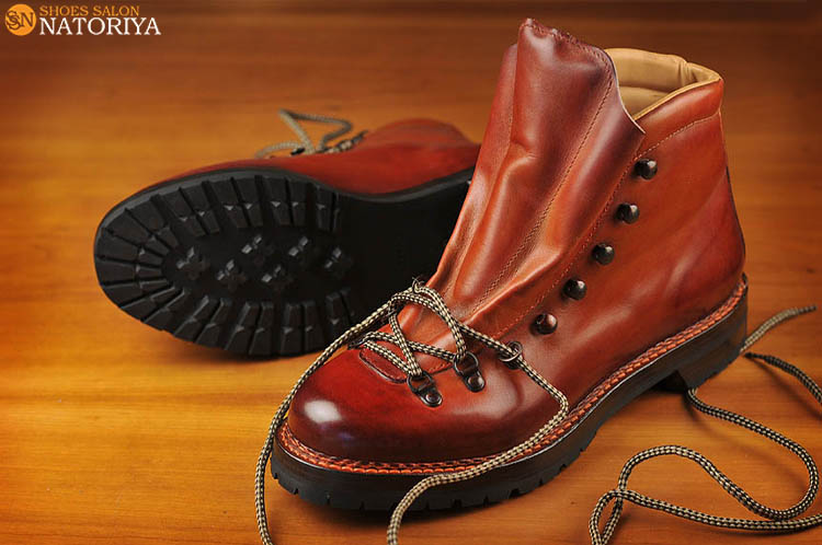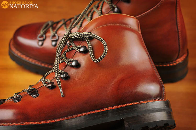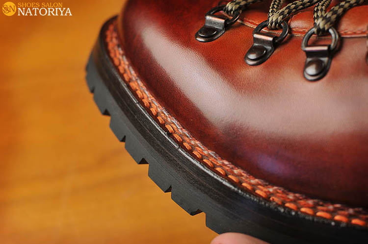 これまでの作品のようなメリハリはっきりさせた色使いとは異なり、徐々にグラデーションを効かせた作品です。つま先が濃くて、サイドクオーターへ向かうに従い徐々に薄い色へと変化しています。やはりこれも職人の手染め染色によるものです。