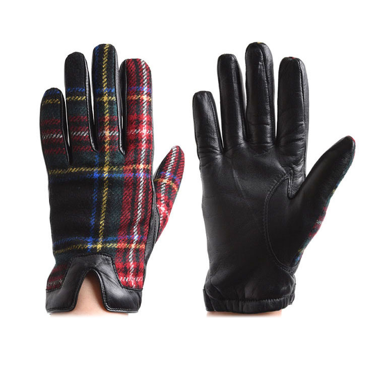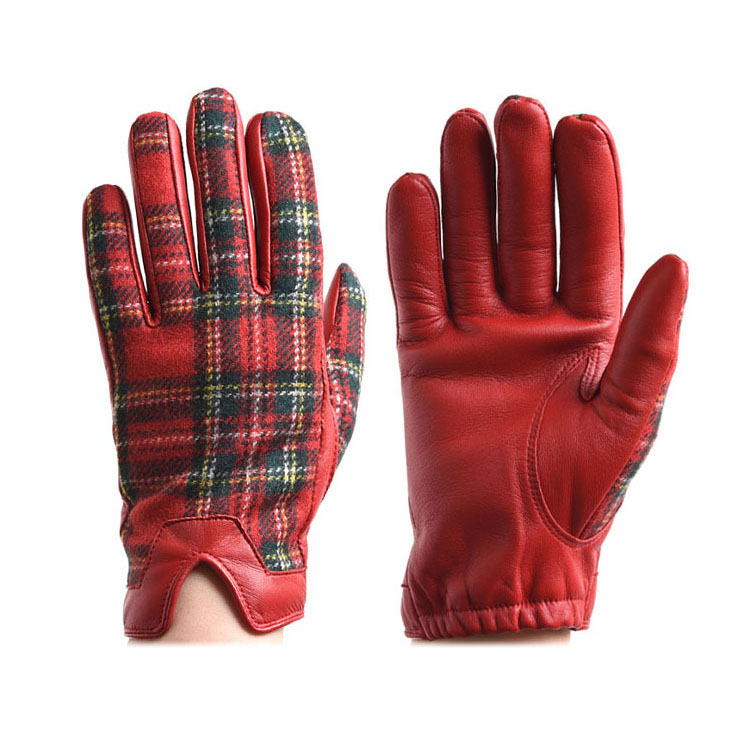 ウール素材を背面に使ったロイヤルターンタチェックのレディース作品。手の平は、シープレザーブラックを用いて柔らかく直ぐに手に馴染む革の質感。英国スコットランドで発明されたこの世界的に有名なタータンチェックは、5世紀頃から伝わる古い柄の一つで、16世紀には様々な衣類に使われるようになりました。そして21世紀になっても愛されている柄です。