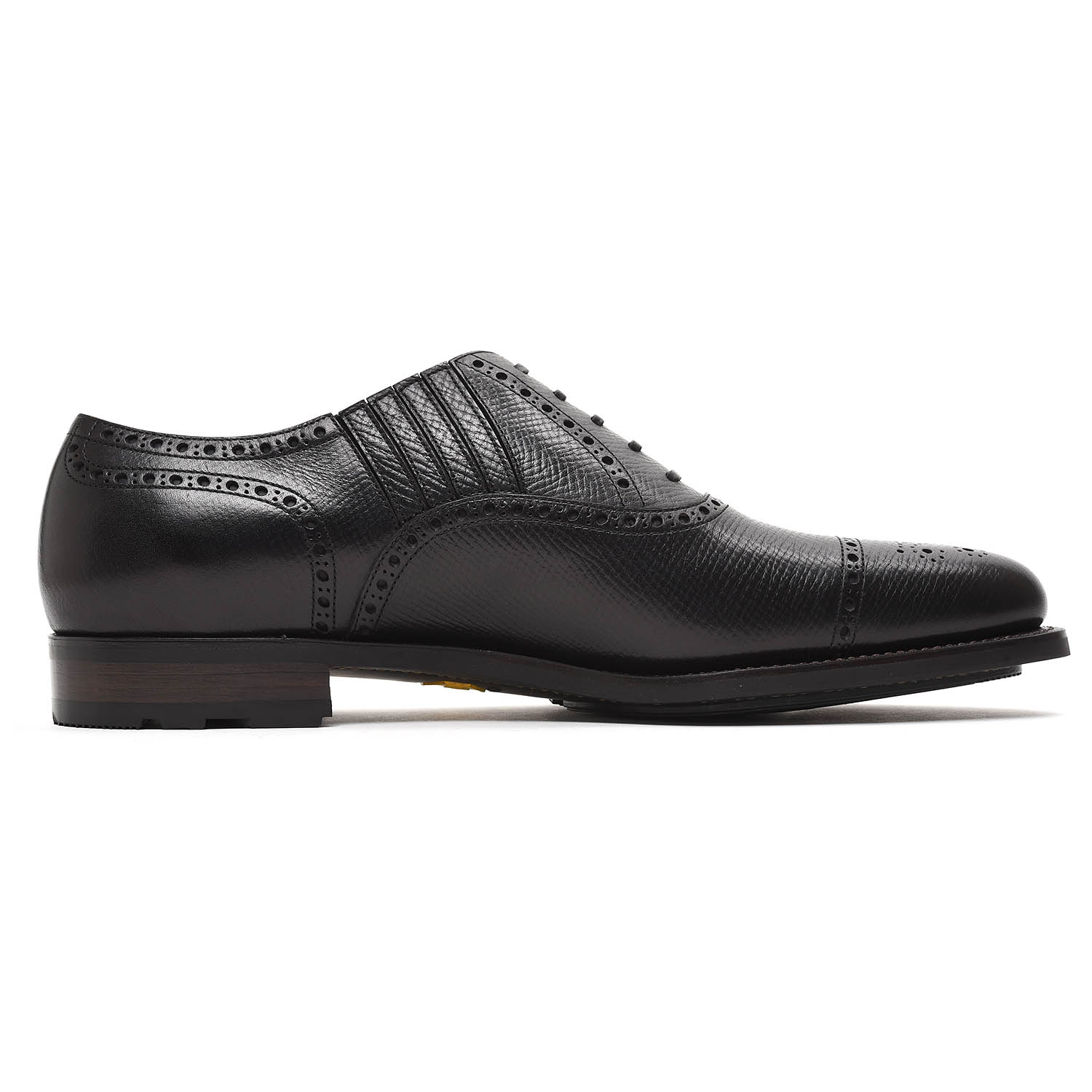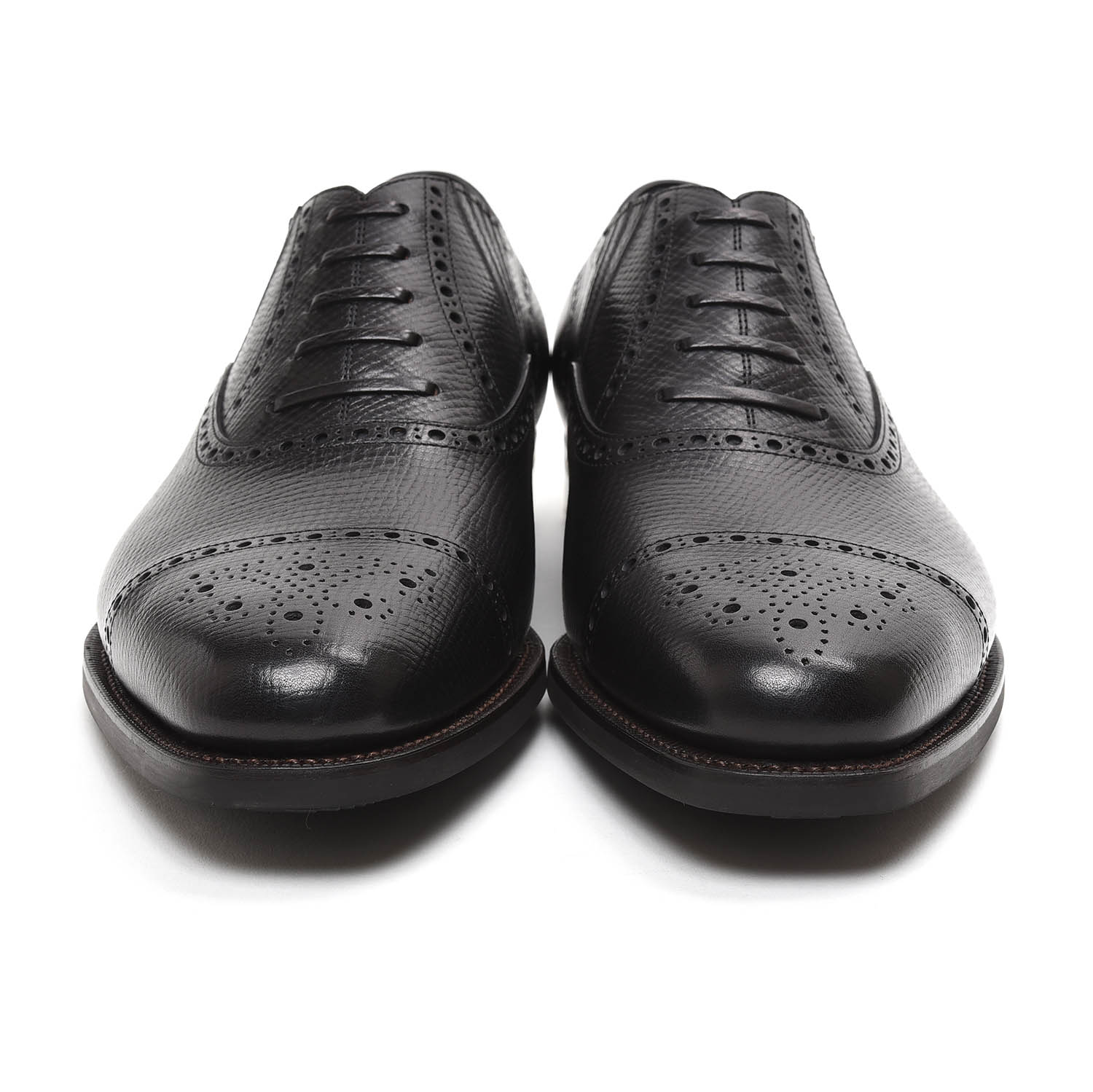 素材的な魅力を強く感じるハッチグレインレザーを搭載したLazyman(レイジーマン)。JOE-0木型に深いシボが合うのか? とご不安だったお客様。全く問題ありませんので、どんどんご指定ください。色もいくつかご用意あります。アッパーデザインはセミブローグタイプ一文字のトゥキャップにメダリオンが入ったデザインで、パンチドキャップトゥとも呼ばれます。