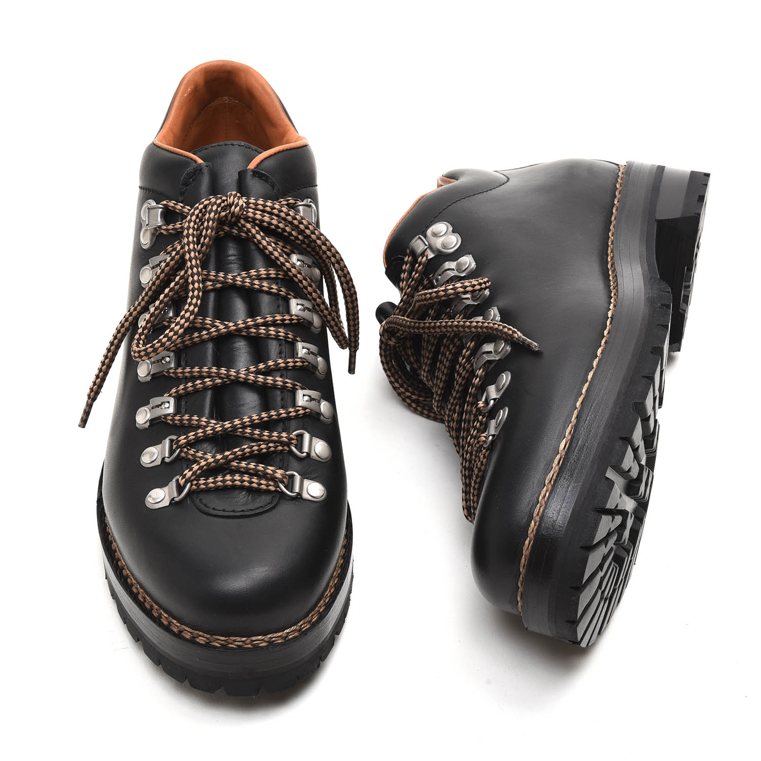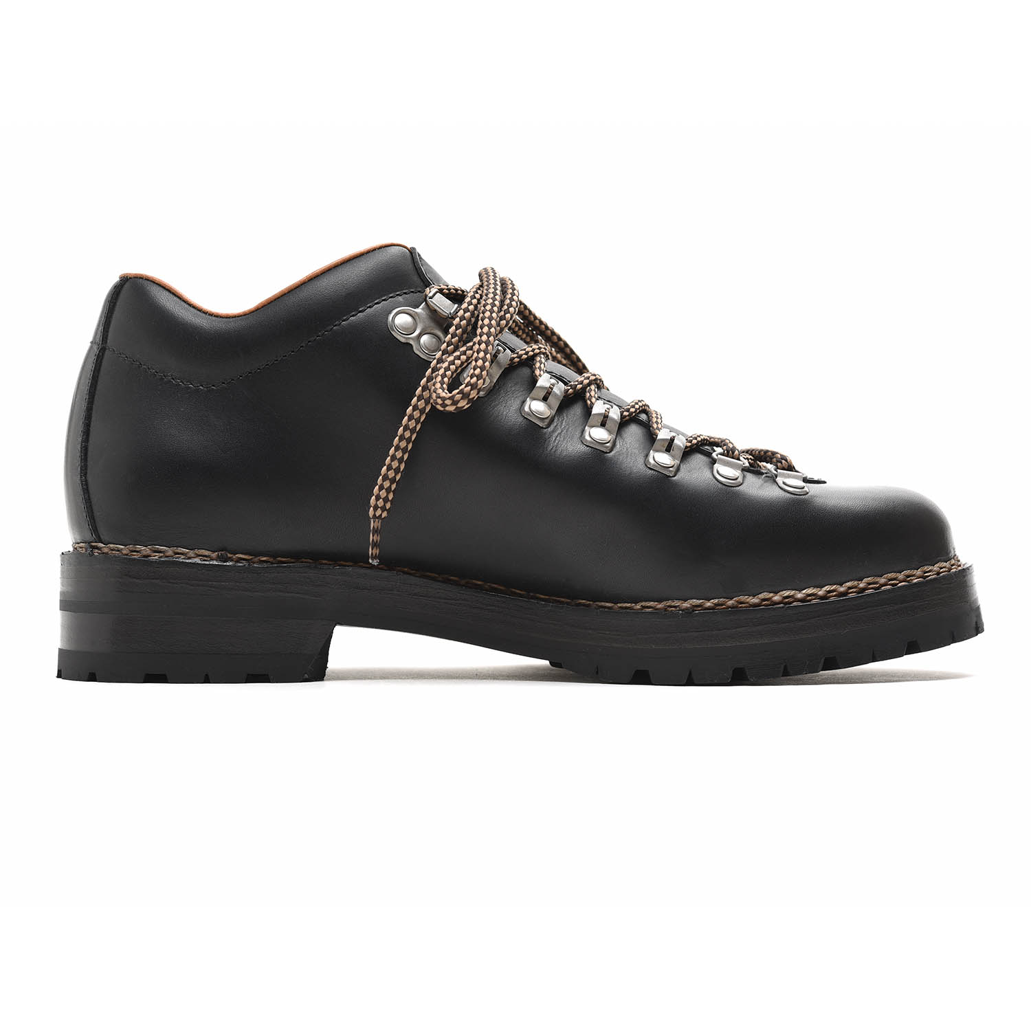 F.lliGiacomettiの登山靴ブランドMarmoladaから登場のアンクルトレッキングシューズ。有名なFG105をベースにして足首から上を大胆にぶった切った潔いデザインが特徴。ハイクオリティーな素材とディテールが超魅力を放つ逸品。FG105にはなかったベアリング付きフックを搭載したスピードレーシングを実現。脱ぎ履きが圧倒的にスピーディー。本家FG105にも採用して欲しい装備。