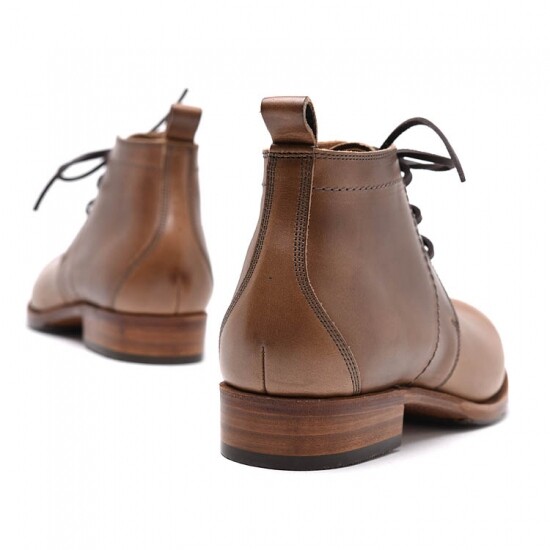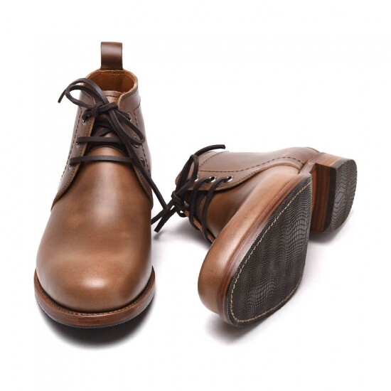 米国ホーウィン社製クロムエクセルレザーをふんだんに使った魅力的なチャッカブーツC712のソール別注NATORIYA仕様が再入荷しました。クッション性とグリップ感の向上を目的に半張りラバーおよびヒールトップリフトを変更。もともとガッツリ楽しめるタフな靴ですが、本作品の魅力をさらに引き出す事ができるスペックに昇華させています。