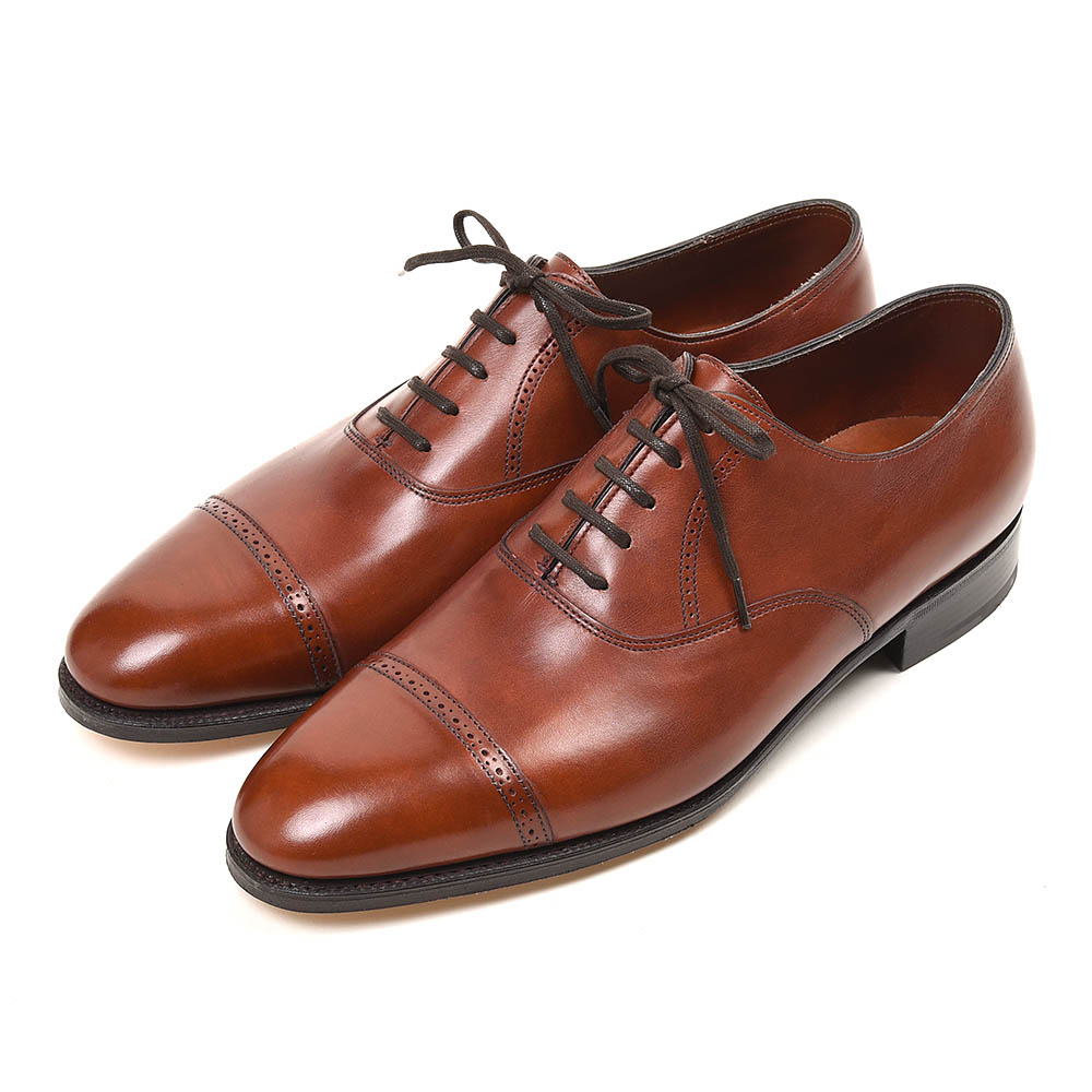 プレステージラインで長く作られている名作クォーターブローグPHILIP II。ヴェヴェルドウエストの手縫い仕上げは、ビスポークシューズそのものと言っても過言では無い高いクオリティーを有しています。木型は最も成功している7000番ラストを採用し、足に吸い付くようなフィット感覚を楽しめます。しなやかに屈曲するシングルレザーソールの心地よさ。アスファルトを叩きながら奏でる小気味よいジョンブサウンドもこの靴底から生み出されます。目で見て、足で感触を楽しんで、音色まで味わえる。なんて贅沢な靴でしょうか。今回、久しぶりにMisty calfのChestnutカラーをオーダーしました。スタンダードなEウィズですので、素直な足入れ感で楽しんで頂けます。プレステージシューツリー、シューズバッグ、メンテナンスBook、スペアシューレースが付属します。20年、30年とロングスパンでお楽しみください。