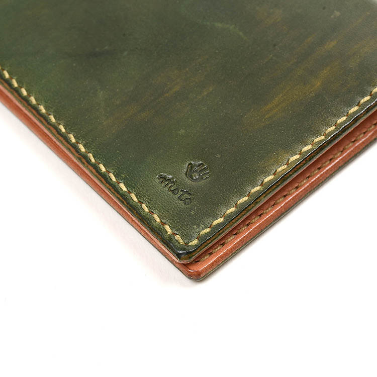 入荷 | MOTO モト CA1D 手染めカードケース (グリーン) 2021年03月28日 MOTOカードケースシリーズから、琴線に触れる染め具合のグリーンが登場しました。手染め感たっぷりに表現された作品です。下地をうっすらと残して染めるムラ染め感が堪りません。初期グリーンでもイエロー系に変化したり、ブラウン系に変化しますが、どう変化するかは使ってみないと分かりません。そこが面白い作品。 掠れた色、下地の色がうっすら覗いて見えます。 < 前の記事次の記事 >