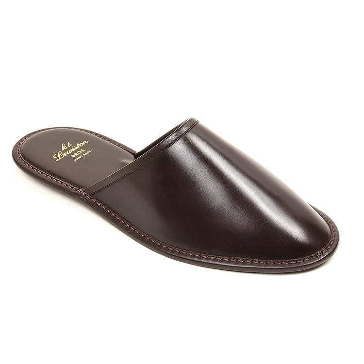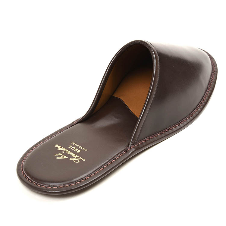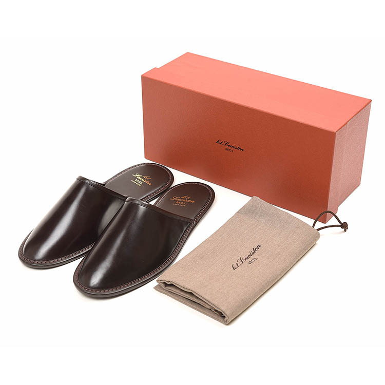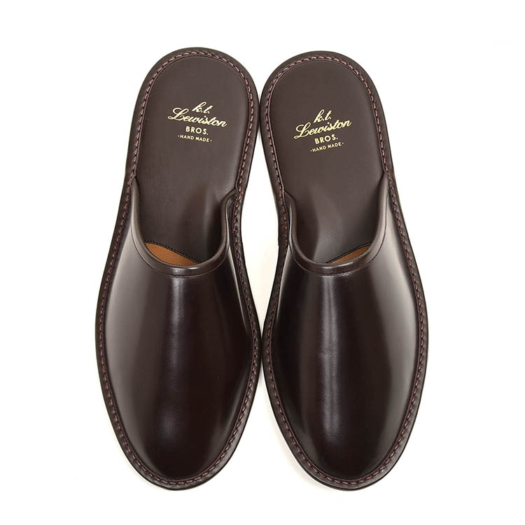 昨日に引き続きK.t.Lewistonのコードバンスリッパからバーガンディーのご紹介。上質なコードバンの輝きを持つ逸品スリッパです。長年店舗で使用しており、このスリッパ目当てにご来店されるお客様もいます。「スリッパ」と考えるとえらく高額に思えるかもしれませんが、素材に使われているのがコードバンと知れば納得です。バーガンディーは、艶、シワのほかに色変化も味わえるのが醍醐味。磨きもできて新品よりも使い込んだものの方が圧倒的な存在感を放つのです。1年や2年使用したくらいではこの味はでないかもしれません。丁寧に扱いながら10年20年と使い続けることで、唯一無二のスリッパへ成長を遂げるでしょう!