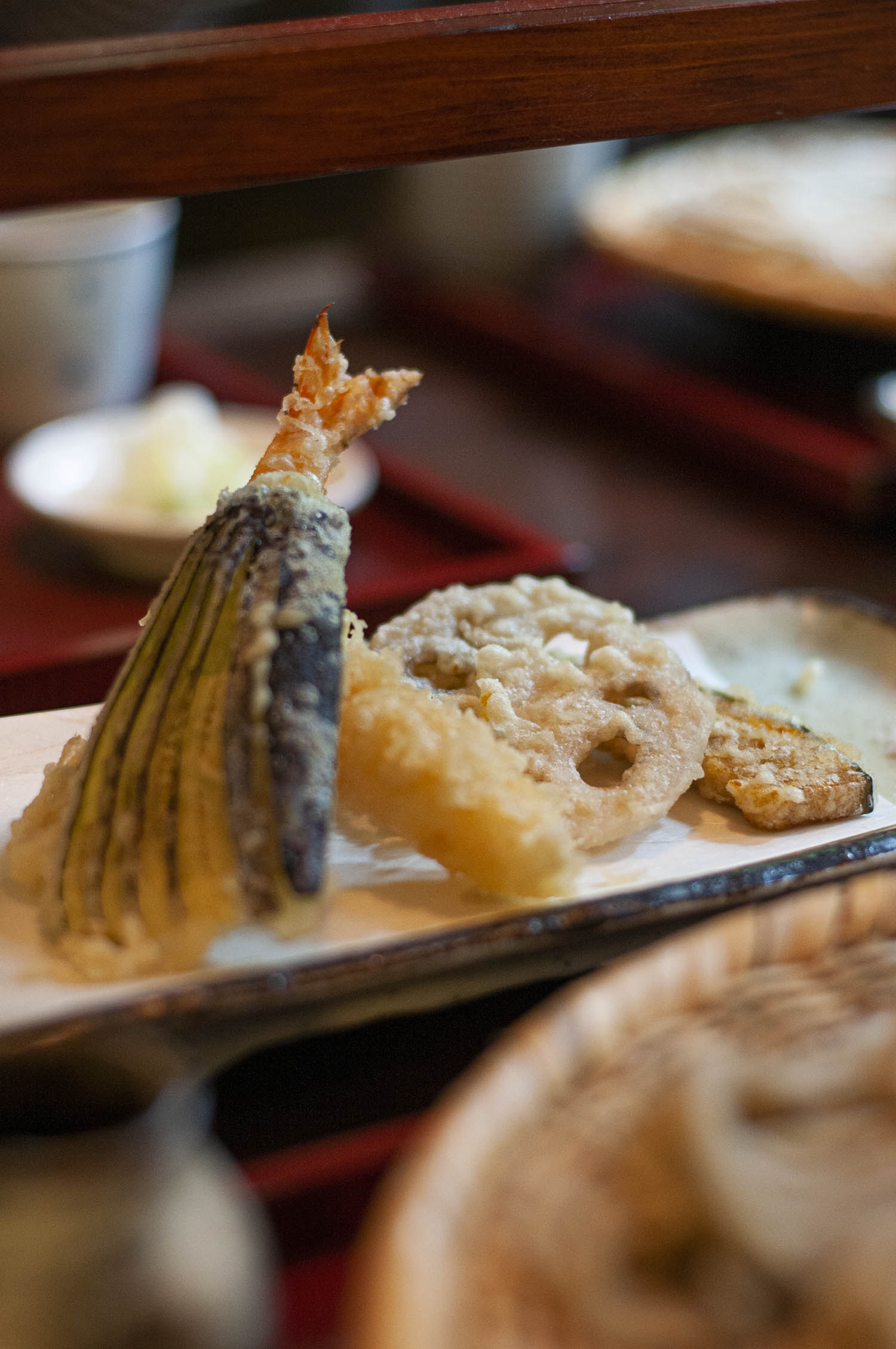 そうこうしている間にも待望の蕎麦が出来上がってきました。今日は天ぷら5品盛りもつけて。