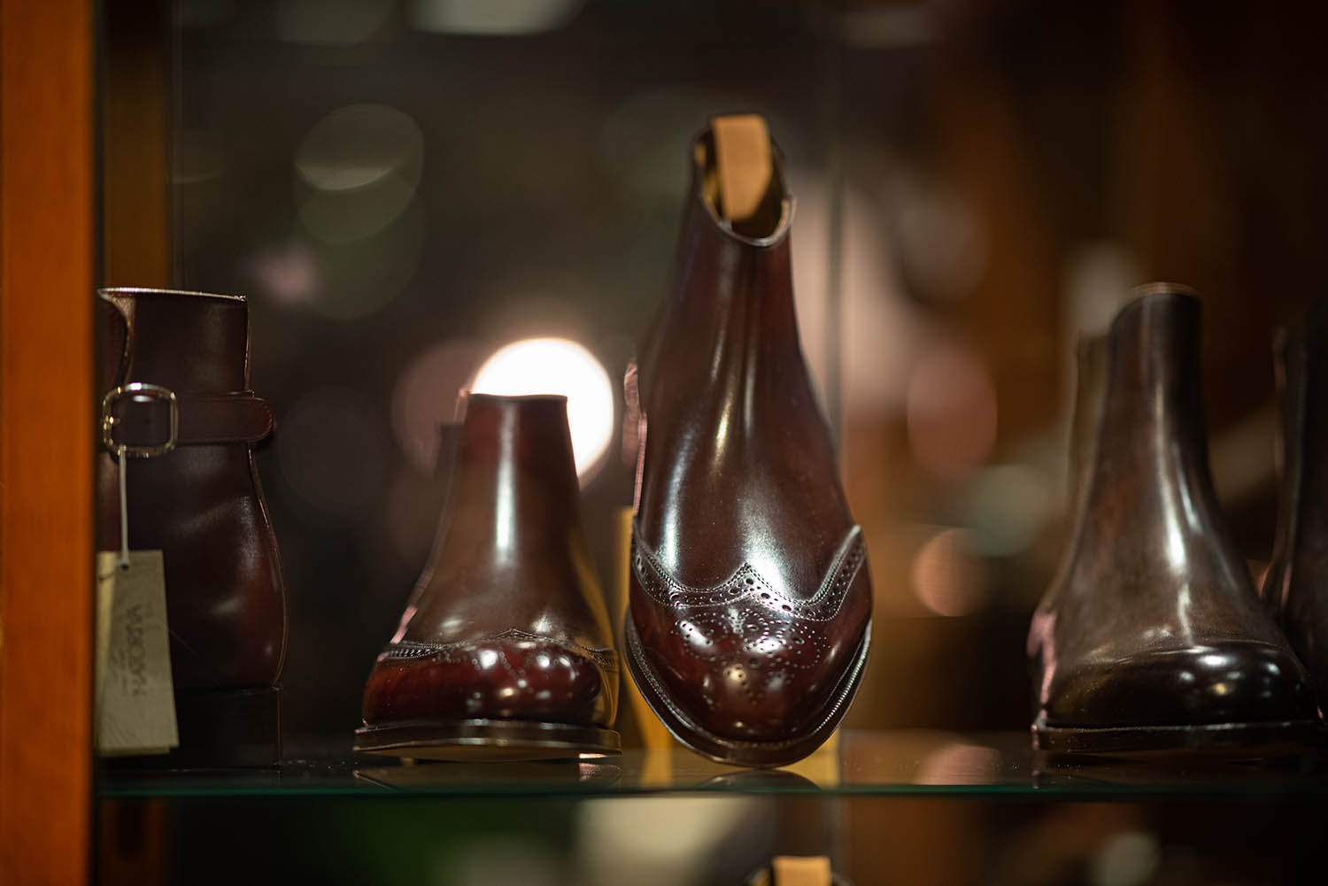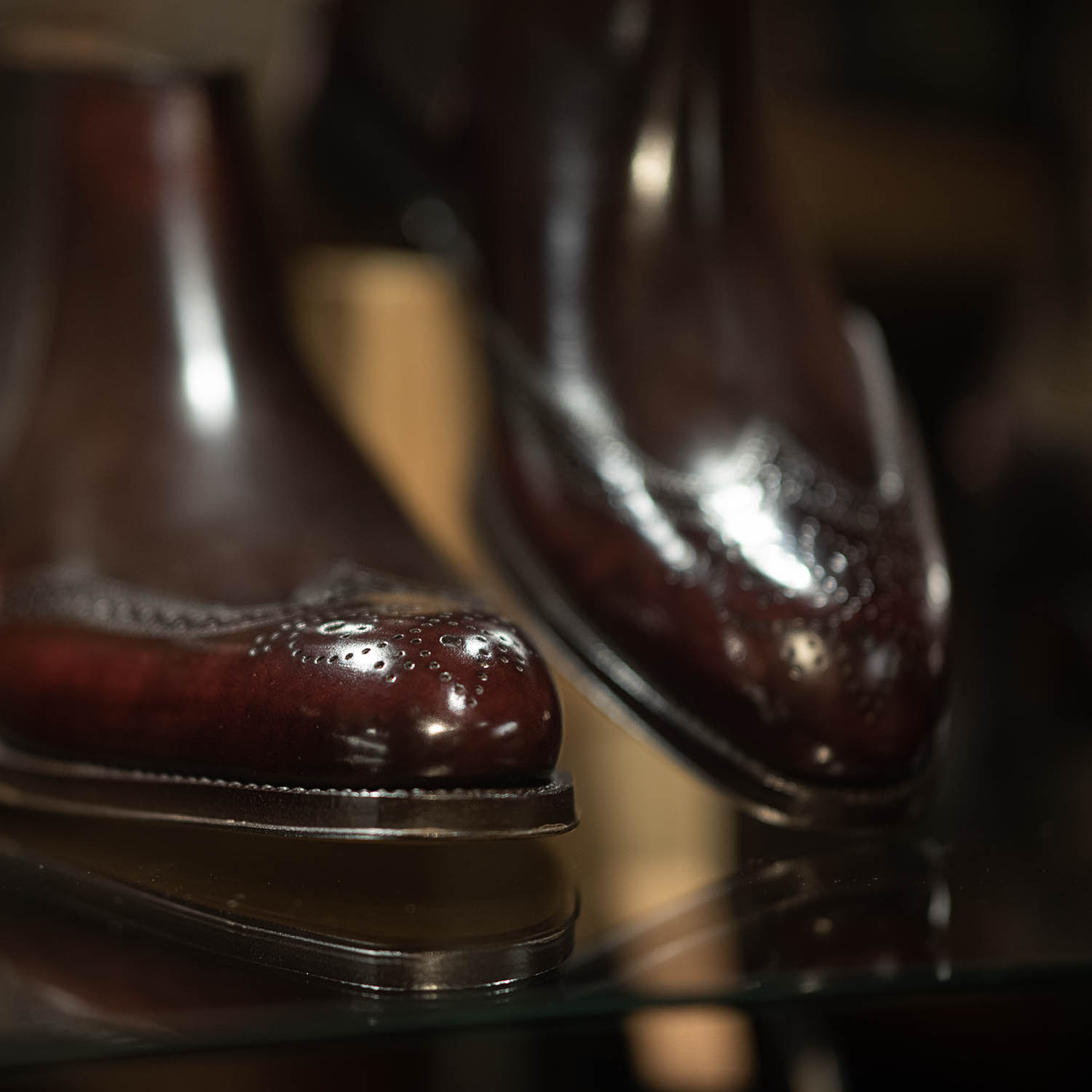 手染め職人が仕上げるコロラートと呼ばれる技法で2色染めされた非常に美しいウイングチップサイドゴアブーツ。イルチアカーフの滑らかできめ細かな革をさらに魅力的に仕上げたトゥポリッシュ仕上げによって、イタリア職人のセンスを痛感させられる逸品です。スタイリッシュに見える木型は、PIATR。オーセンティックなシルエットの中にもラテン魂が注ぎまれている木型です。とにかく履けばわかる素性の良さ。履き込むほどに変化を遂げるイルチアコロラート。信頼のおけるイタリア靴としてフラテッリジャコメッティをお勧めしたいです! 入店してすぐのガラスケース内で見れますよ〜。ご購入で試着希望はスタッフまでお声がけください。