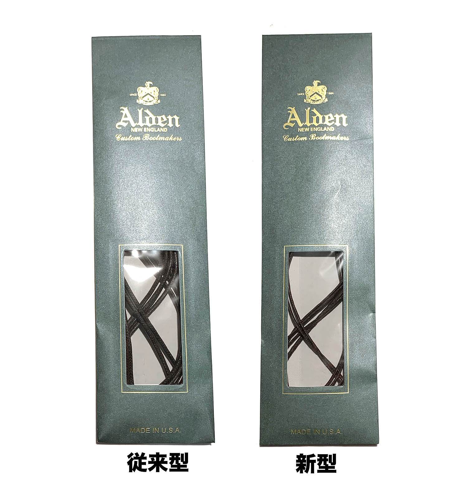ここで老いた眼に鞭打って、よーーーく確認すると確かに丸というよりも平紐に近いものがあるではないですか! どうやら従来タイプのものに加えて、新型の細くて平たいタイプも混在して入荷していることがこのとき初めて分かりました。