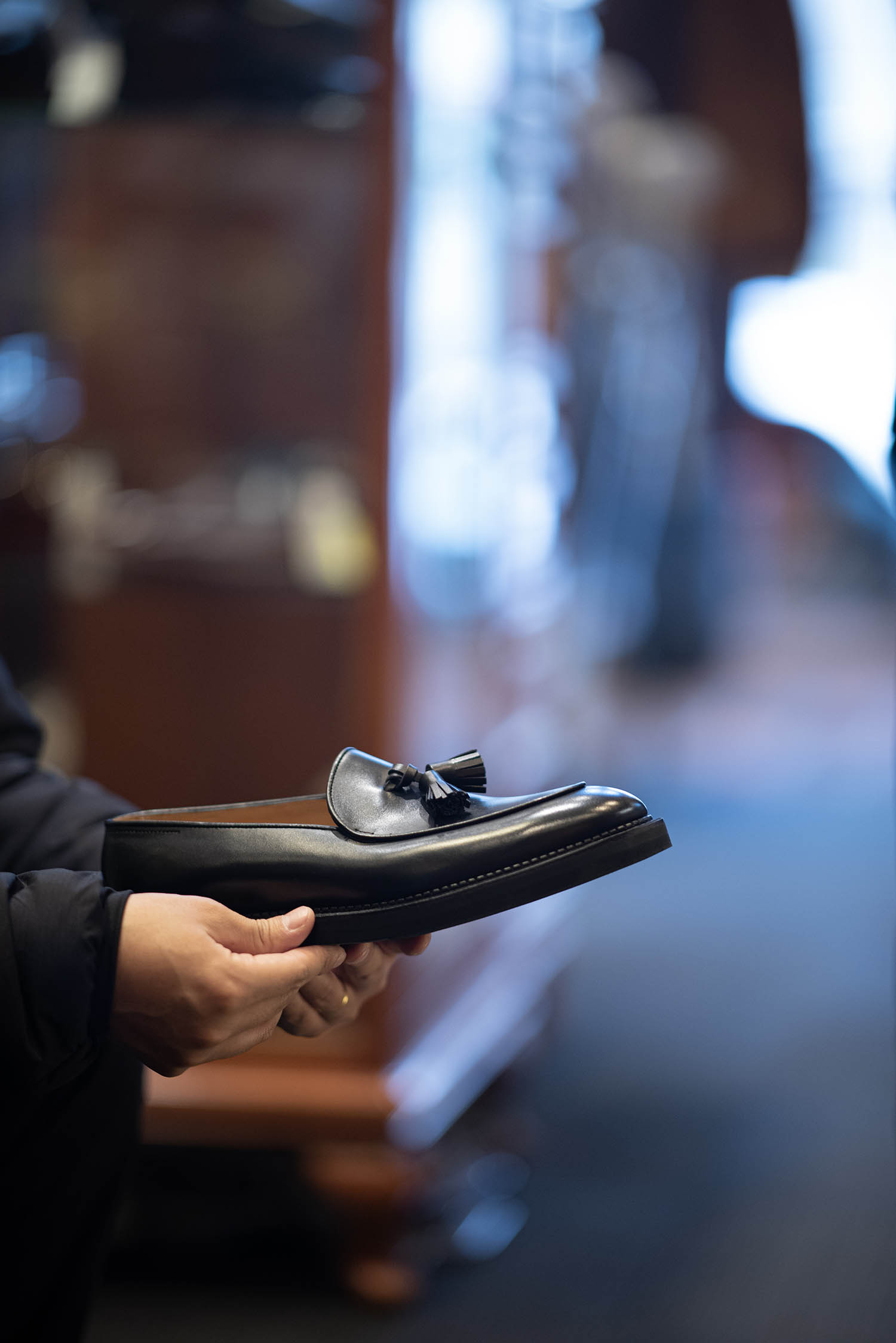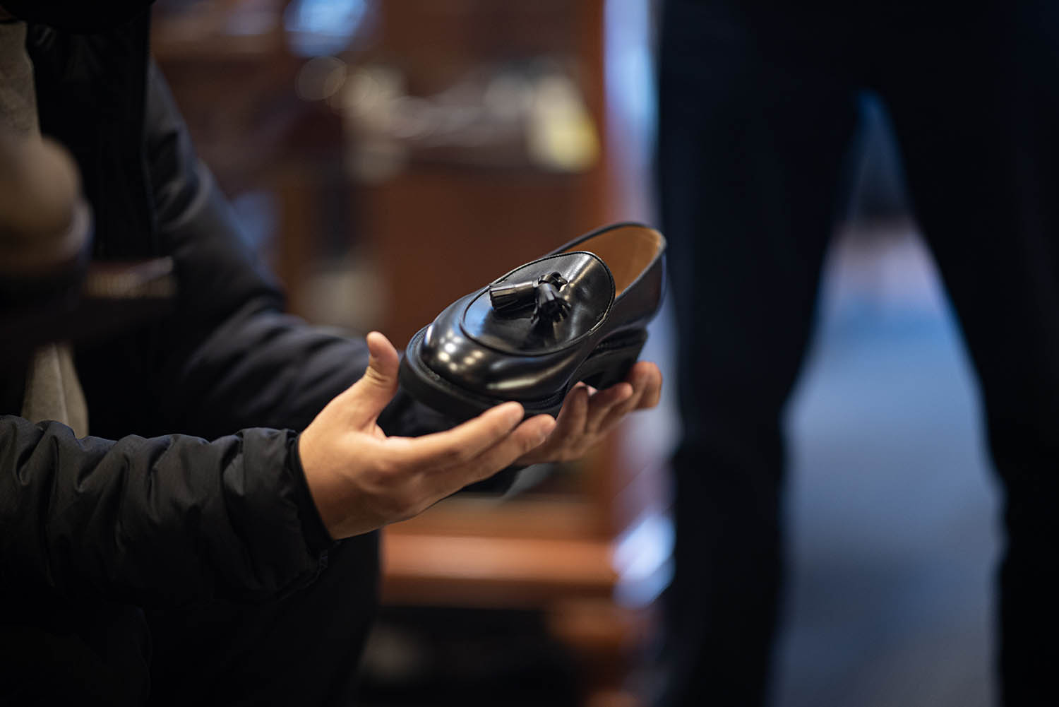 「もう一度これ履いてみてよ」と友人。履いては見るものの意識はどうしてもジョンロブに向かってしまう。しかし、価格がちょうど倍も違うものだから、おいそれとは決められない。