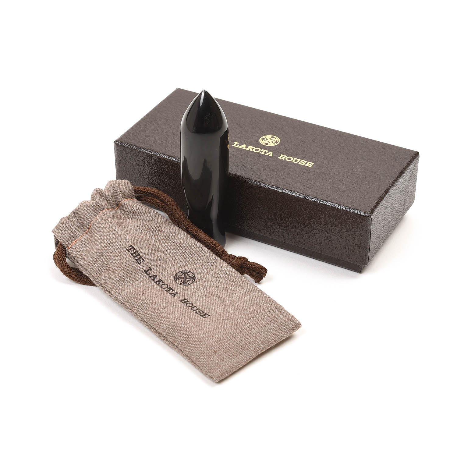 水牛の角から削り出したもので、芯持ちだそうです。だからめちゃめちゃ硬い。でも軽くて操作しやすい。独特の砲弾型で先端は尖っています。この部分は、実際に使うときに要注意です。うっかりよそ見してコードバンをグギャーってやってしまったらと思うと・・・・。はぁ、想像したくありません。