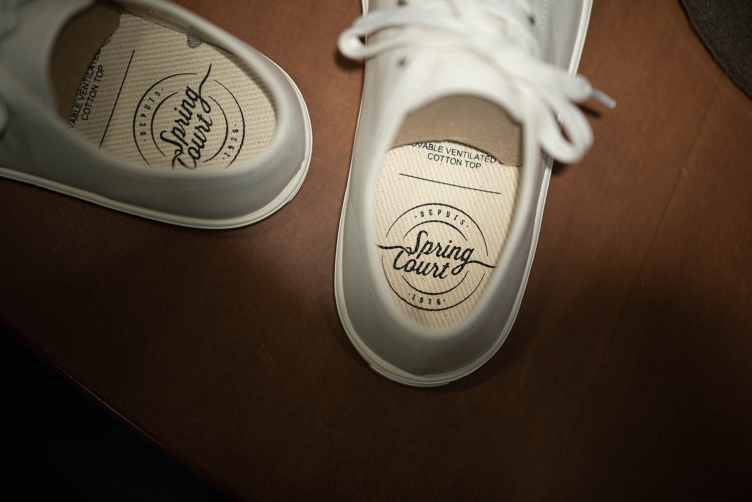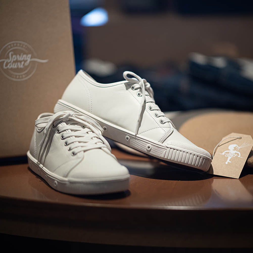 ジョンレ●ンが履いて一躍有名になったフランスのスニーカーSpring Court(スプリングコート)のG2レザーバージョンです。今季初入荷からマイナーチェンジされました(数年に1度のルーティンです)。外見はそのままで、内装が少し変更になっていますが、基本はこれまでとほぼ変わらず。そして、快適な履き心地も継承されています。この履き心地を支えているインソールの優れた感触。長時間履いていても疲れにくいクッション性と通気性を考慮した独自のエアアウトレットデザインも今ではこの靴のアイコンとなっていますね。(サイドの4つ穴)