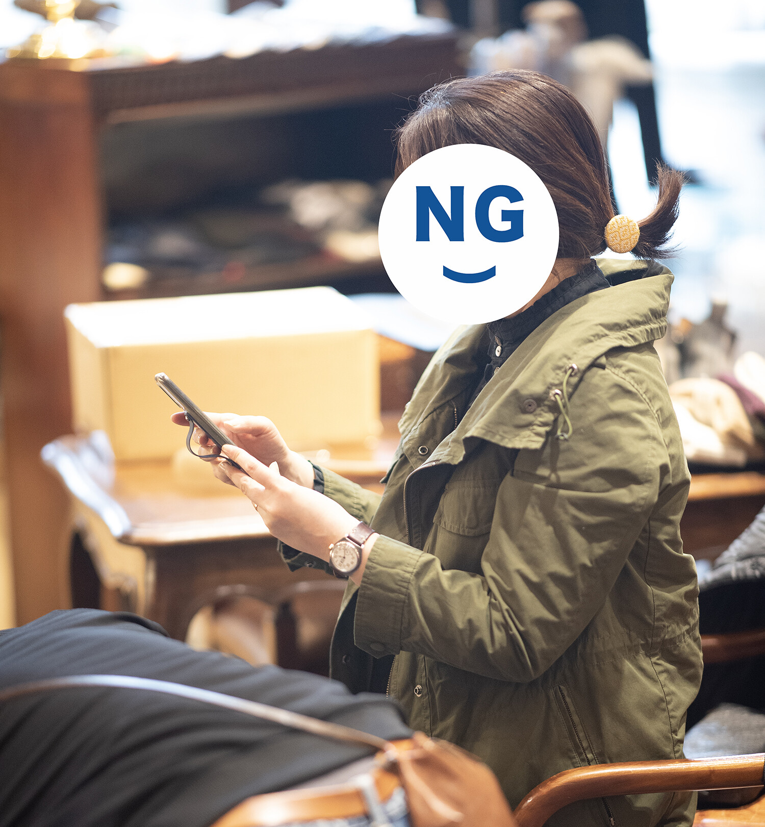 オッティーさんがそれぞれ履いたときの写真を撮って、それをスマホで見て選んでいます。