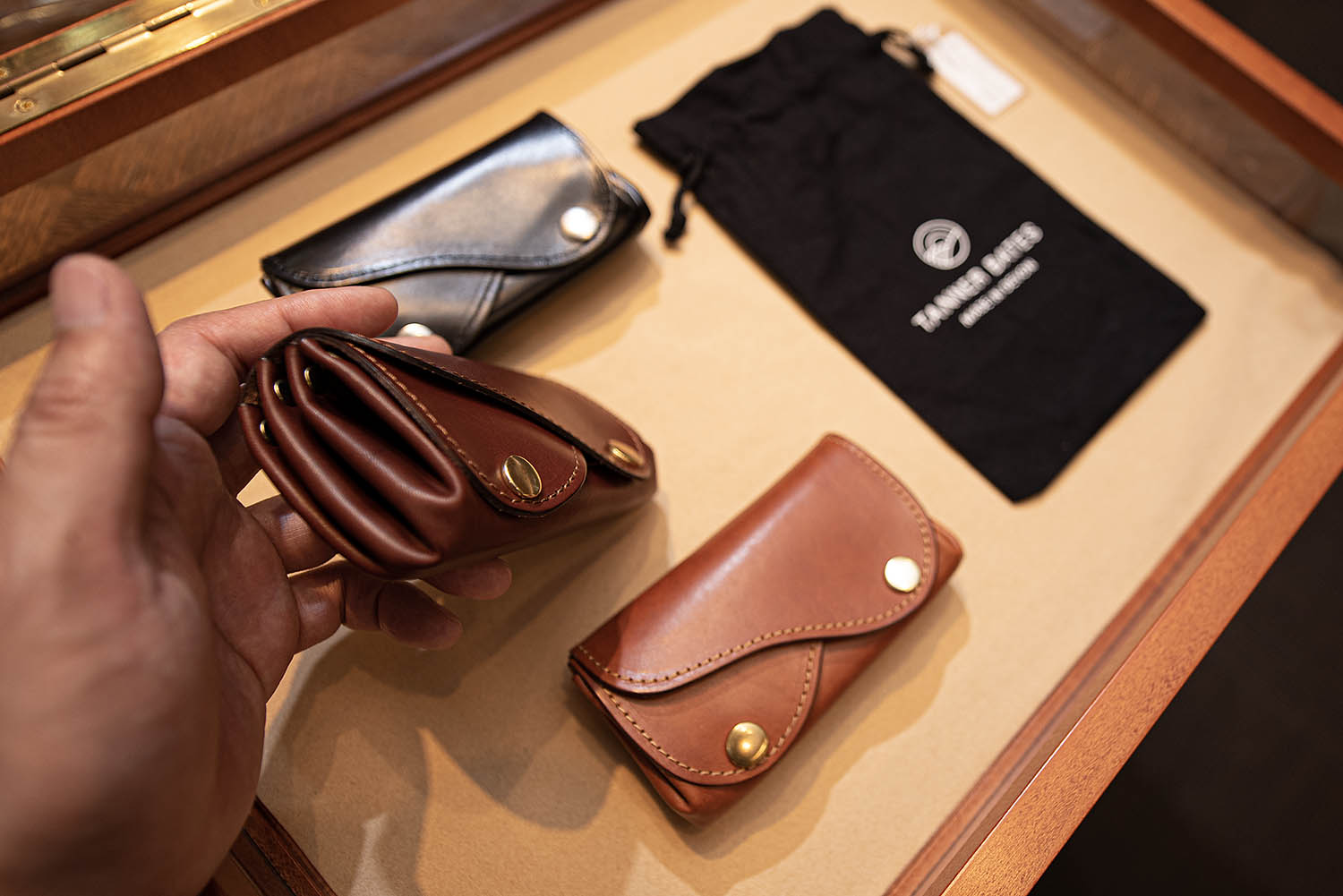 人気のTANNER BATESからSANTINI「サンティーニ」がフルカラー入荷。もちろんイギリスのデボンの工場で手作りされています。これが作られるまでのヒストリーも楽しい作品です(カタログページで読んで)。オークバークレザーを使用した“GARA LEATHER PURSE (がま口財布)”で、フラップが個別に2枚ついていて(その形状も面白い)、バックポケットにはカードも挿せるようなデザインがクールです。5つの部屋がありお金以外にも管理できそうです。使い方は自由なので、どこに何をさせば使いやすいか探る旅もいいでしょう。アンライナーなので、たぶん想像しているよりもソフトな革の質感に感じると思います。とても気持ちの良い柔らかさです。オークバークレザー自体エイジングが楽しいと評判ですが、このパースは使い込むことでさらなる変化を楽しめそうですよ。コンパクトサイズながら独創的な形状もそそるでしょ!?。カラーで超絶に悩みそうですが、こういうのは直感で選ぶのが吉です(笑)