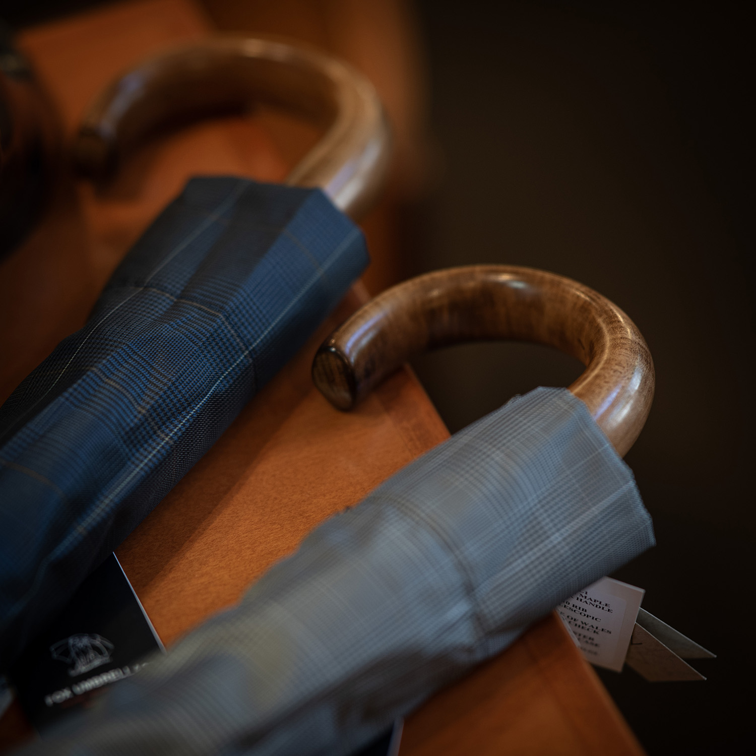 Foxアンブレラズからテレスコピック折畳み傘が新しく入荷しました。ハンドルにブラウンメイプルクロックウッドを使用して、折り畳まれていても味わい抜群の傘です。滑らかに磨き上げられたハンドルは触っていてとても気持ちが良く、使い続けると手の脂によって少しずつ色も変化するそうです。変化の仕方も人それぞれということですね! エイジングする楽しみもある傘って好きでしょ?(笑)