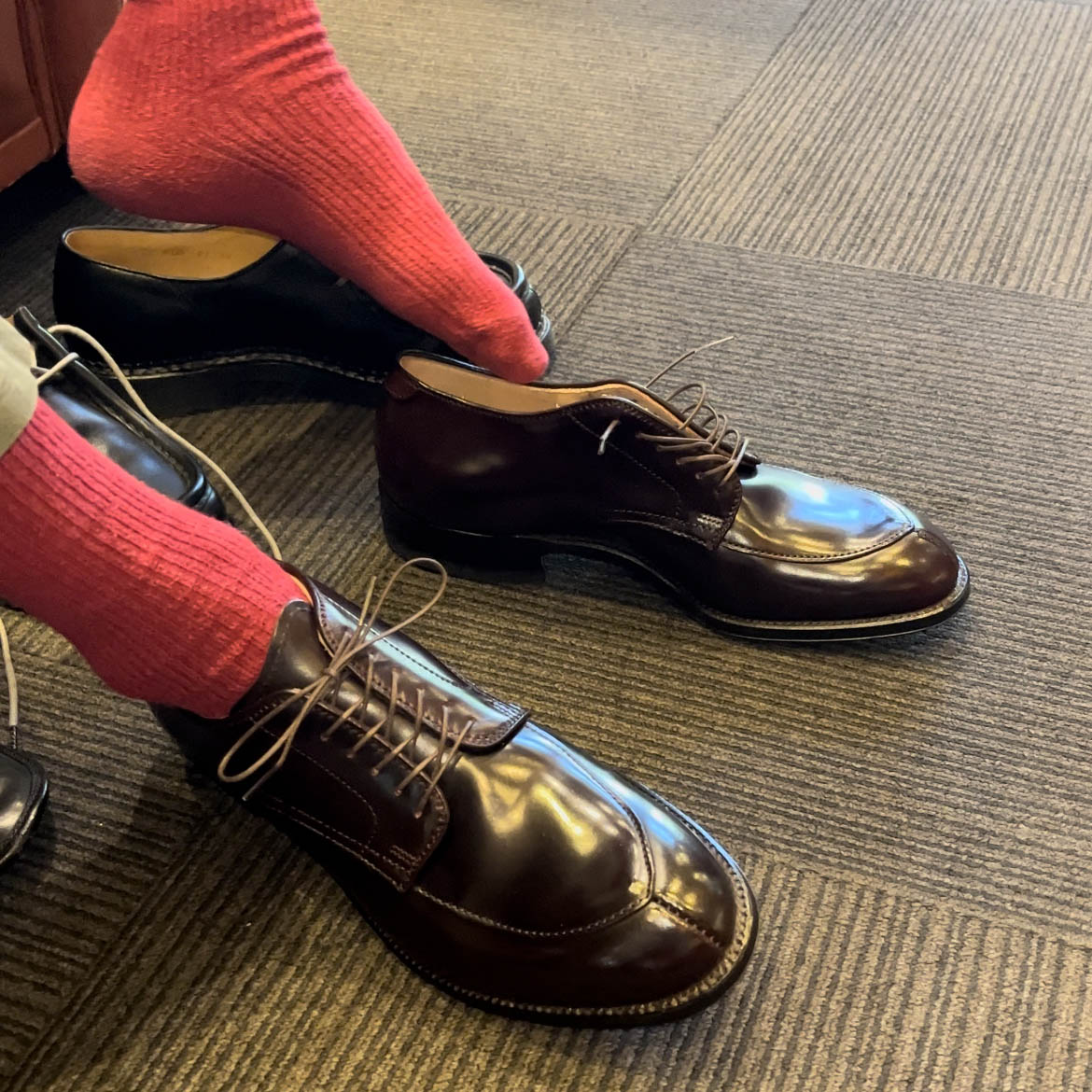えっとぉ〜、これは試着ではなく、あくまで購入済みのご自身のオールデン54321を履きに来ています。