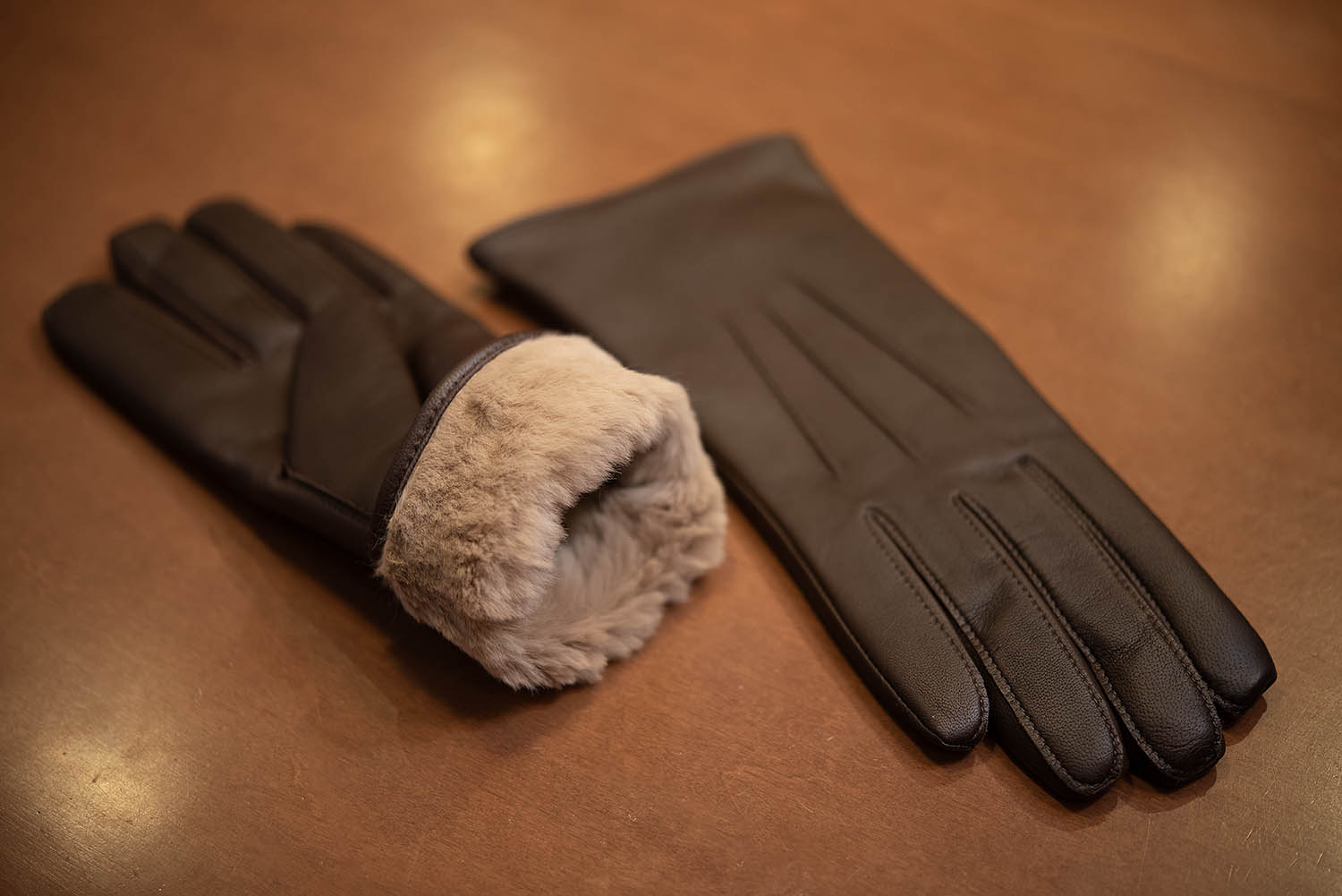ラビットファーは、裾から指先までぎっしり! 空気を包み込む能力が高く、温かい。それでいて、非常に滑らかな肌触り。一度使うとやめられないそうです。