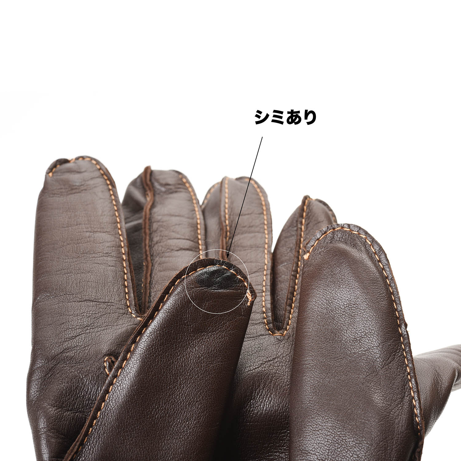 製造時の接着剤が滲み出てしまったものと思いますが、指先が黒ずんでいるDENTSがありました。よくみるとシミがわかりますが、気にしなければ問題なく使えるレベルです。素材は、ヘアシープ×カシミアを使った上質なグローブで、装着感も暖かさも申し分ありません。とても勿体ないので、大幅値引きでご提供させて頂きます。1双だけですが、サイズの合うお客様いかがでしょうか。