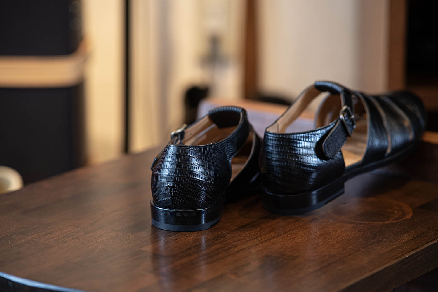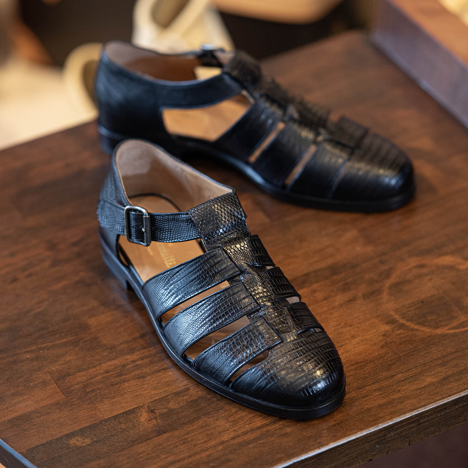 美しい陰影。その中に見える一つ一つの細かな腑の模様が絶品です。エキゾチックレザーを使った靴を作らせたら右に出るものはいない。そう言っても過言ではないでしょう。