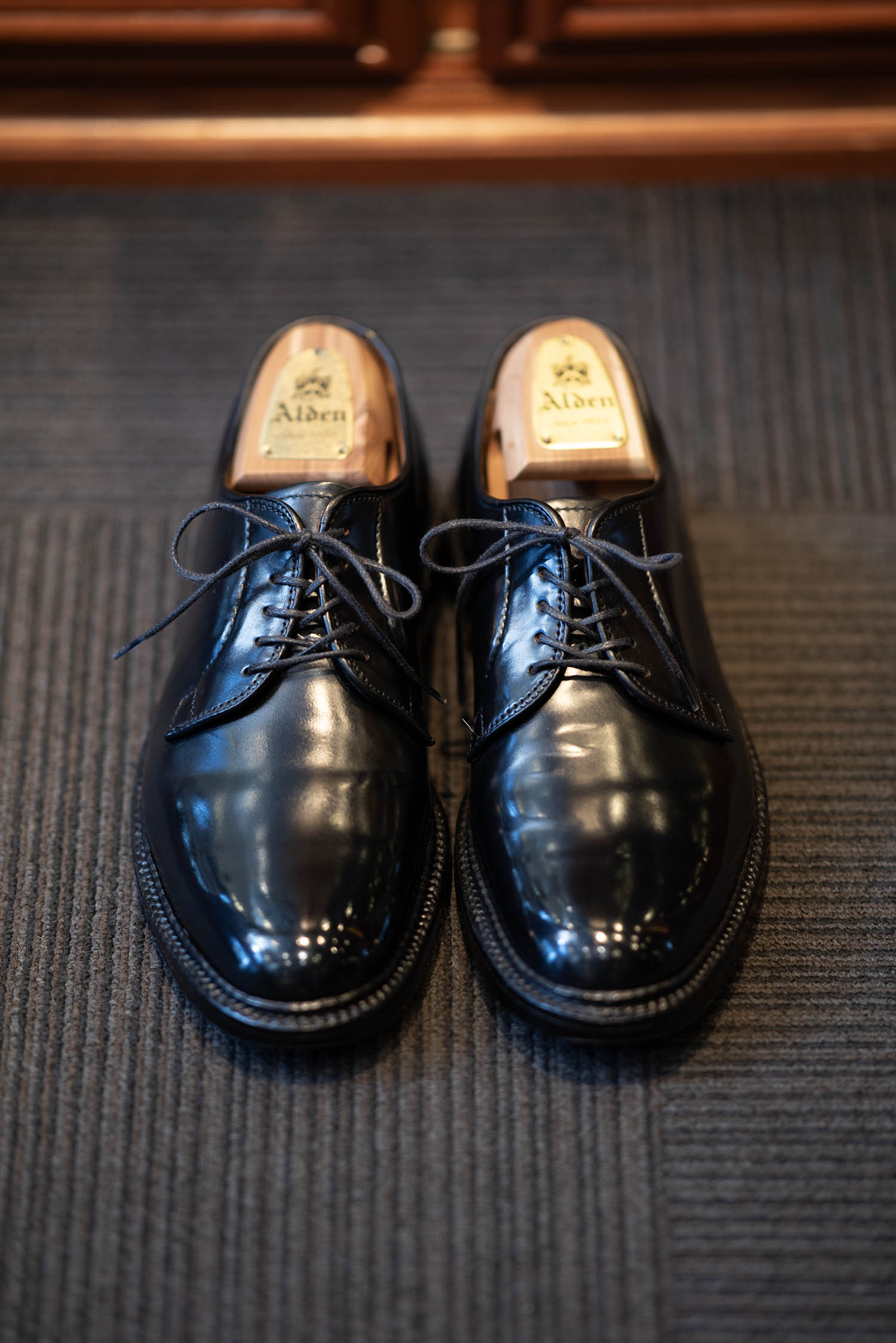 さて、今回はメンテしたオールデンのお話しです。定期お預かりしている「コジーさま」のオールデン9901コードバンCLIPPER。2年前にお求め頂いてまだ綺麗ですが、より綺麗に仕上げさせて頂きました。お仕事でバリバリお使い頂いている相棒の革靴です。今回は、ワックスもしっかりと入れてピカらせてみました。まだ革が新しい部類なので、まぁ面白いように光る光る(笑) あんまりにも光すぎてしまって、お仕事柄まずなこりゃと思い、一回落として艶を抑えながら再度ポリッシュました(笑)
