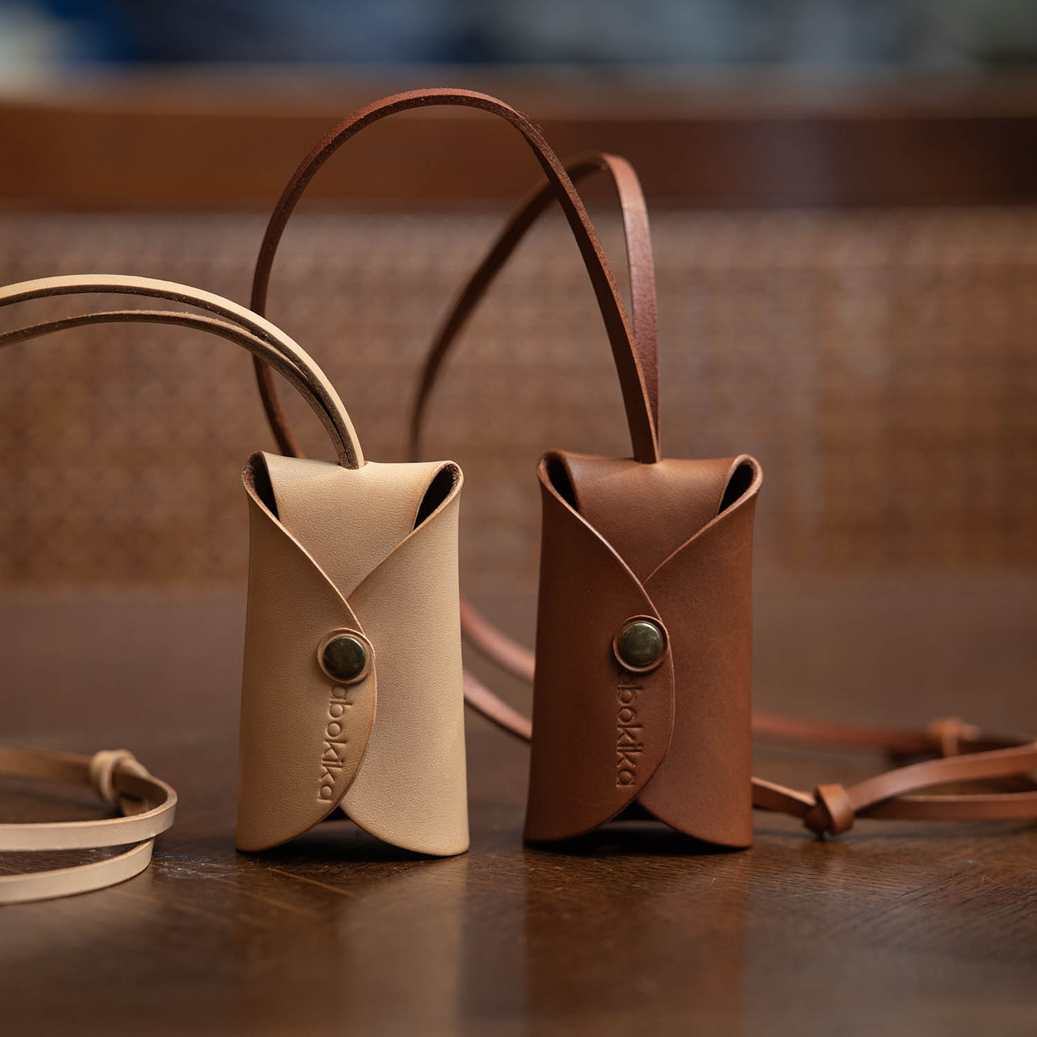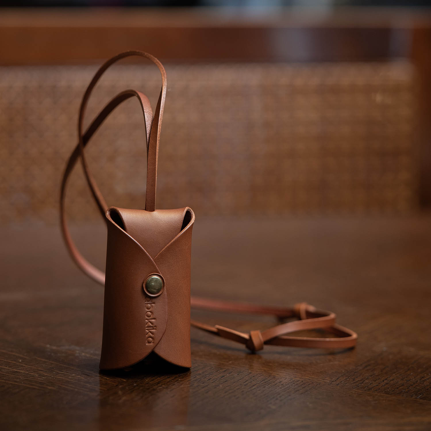 イングランド(英国)で作られているネックストラップ型のキーケースです。ベルギー製ヴェジタンレザー/真鍮素材を巧みに独自のデザインに落としてあって、格好いいし可愛い作品です。使っていると勝手に艶が出てきて、色も深みを増してくれる革なので、とても楽しい。しかもほぼノーメンテナンスでも問題なし。実際にダークブラウンを毎日使っていますが、特に何もしていませんが、へっちゃらです(笑)それどころか、どんどん革の風合いが増してきているのが実感できます。わざわざクリームを入れなくとも手の脂だけでもこれだけいい味になるんです。