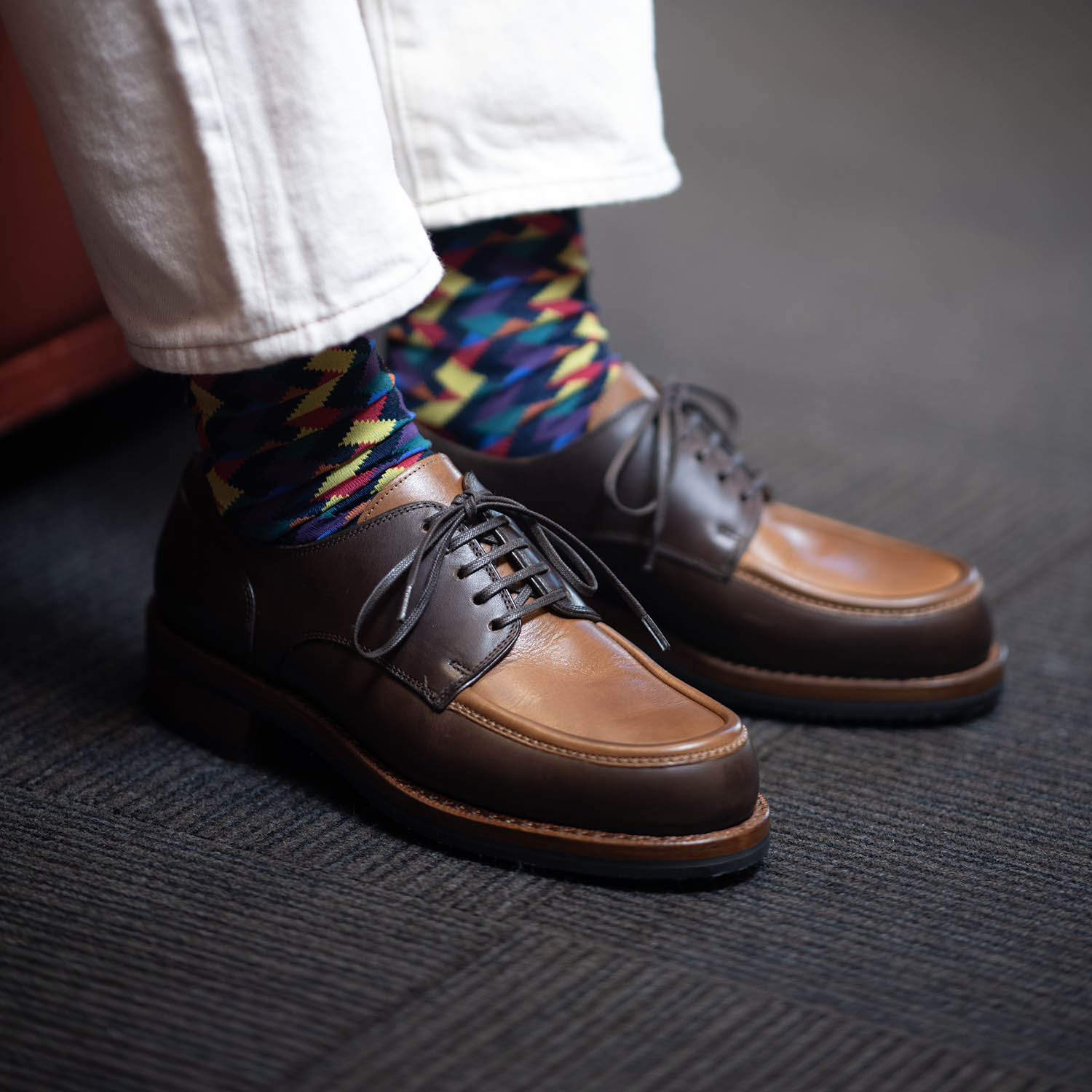 当店別注で作ってもらったジャコメッティ FG318のリール動画を作りました。午前中にご購入して頂いたお客様にご協力いただきました。めちゃめちゃ似合っており、「この靴に似合うかな〜と思って履いて来た!」という白パンツとayameソックスが好相性を見せてくれました。それにしても、写真映えのするイイ靴です。撮っていて楽しい(笑)履き込むとVACCHETTA ELBAMATTAレザーが、少しずつ抜群の変化を見せてくれます。ということは、所有したらもっと楽しい靴になるわけです!