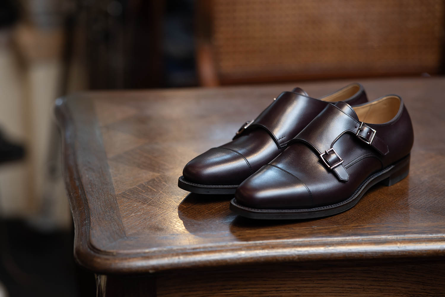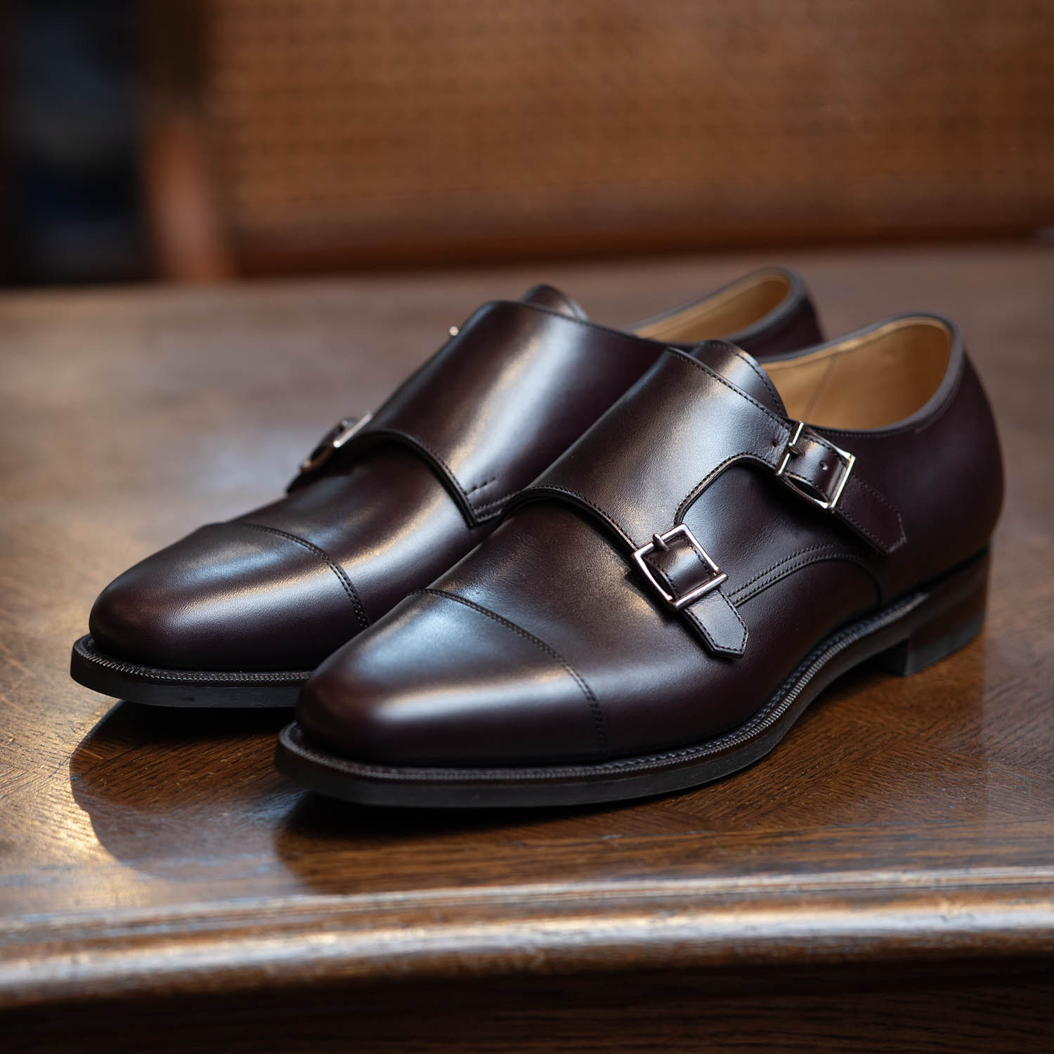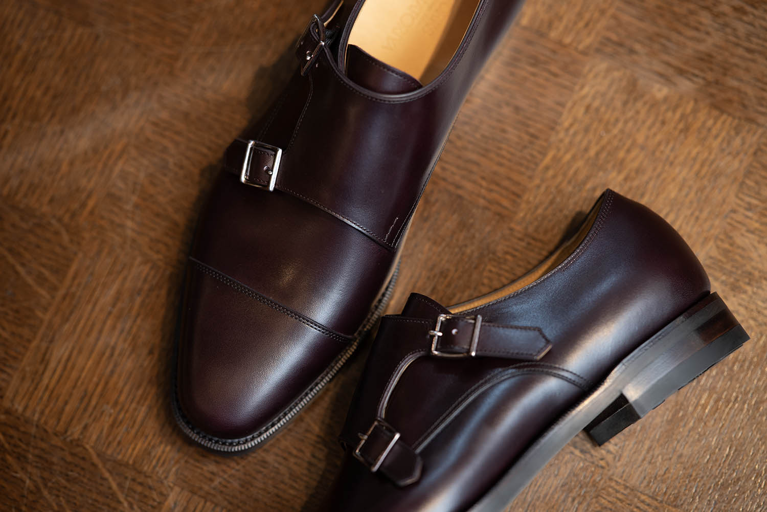 オーダーから完成まで約5ヶ月と、最近では早い仕上がりでした。木型は、ファーストモデルのJOE-0ドレス木型を使用。アノネイ VOCALOUカーフのアッパーは、バーガンディー系#8272カラーです。バックルはシルバー。ライニングは、デュプイレザーのナチュラル。