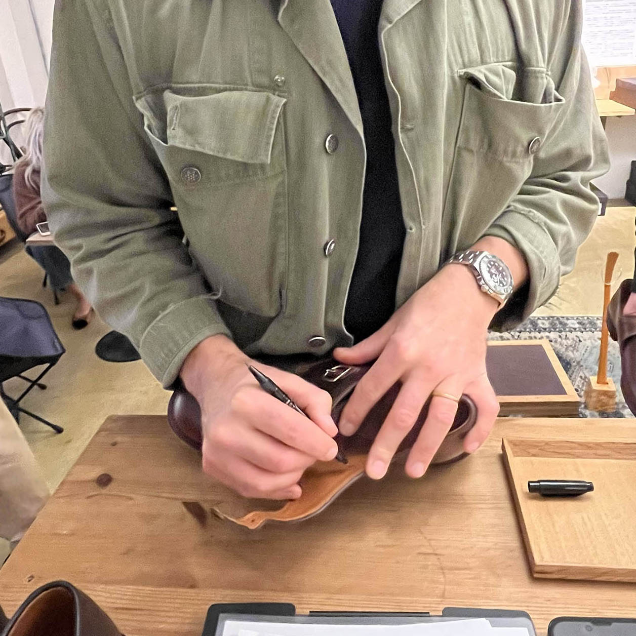 Regentのストラップ裏へのサイン。ここは目立たなくて、履いても消えなくていいかもしれないですね。