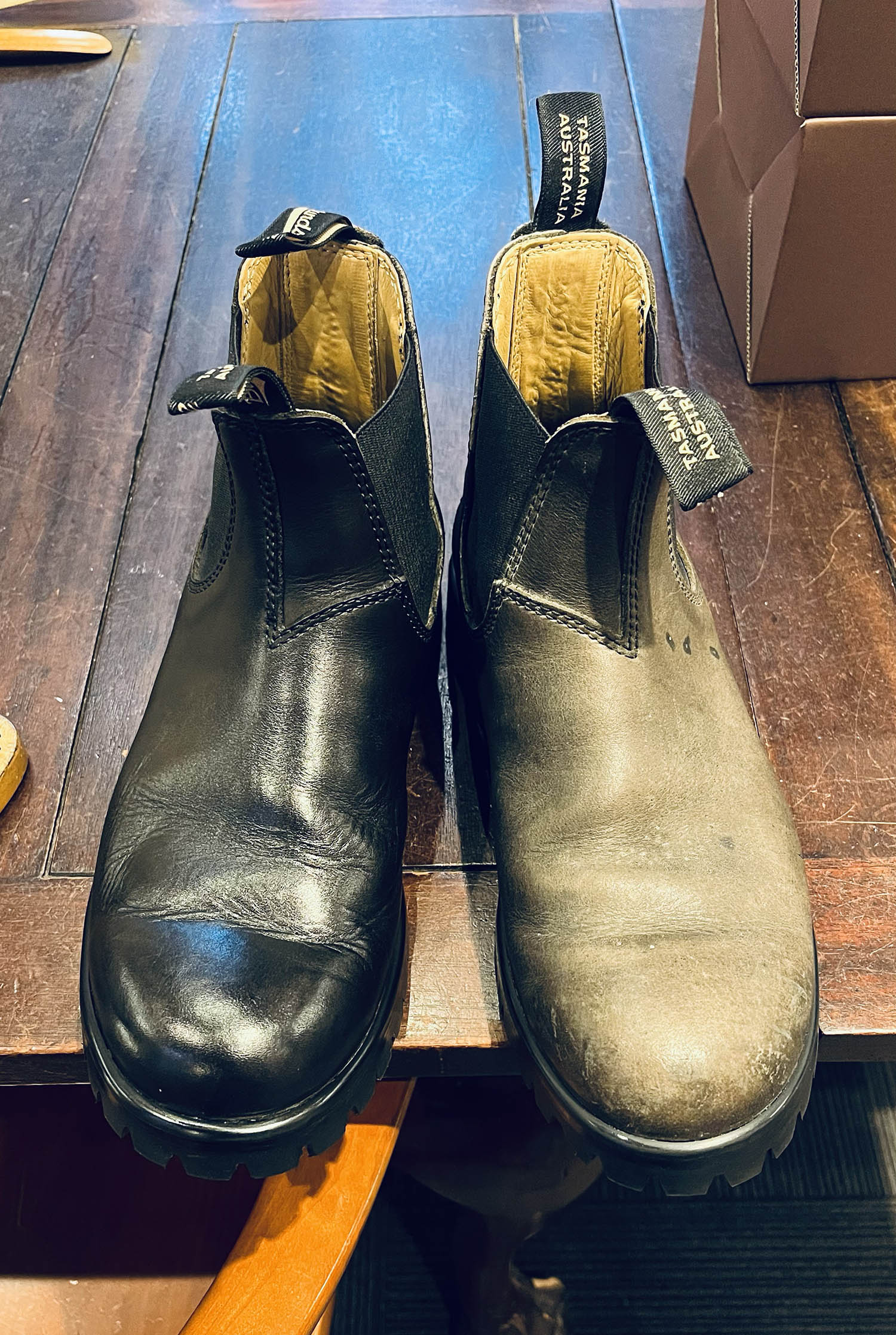 と、お持ちいただいたサイドゴアブーツ(実際に40年前かは定かではないけれど自己申告ということで)。