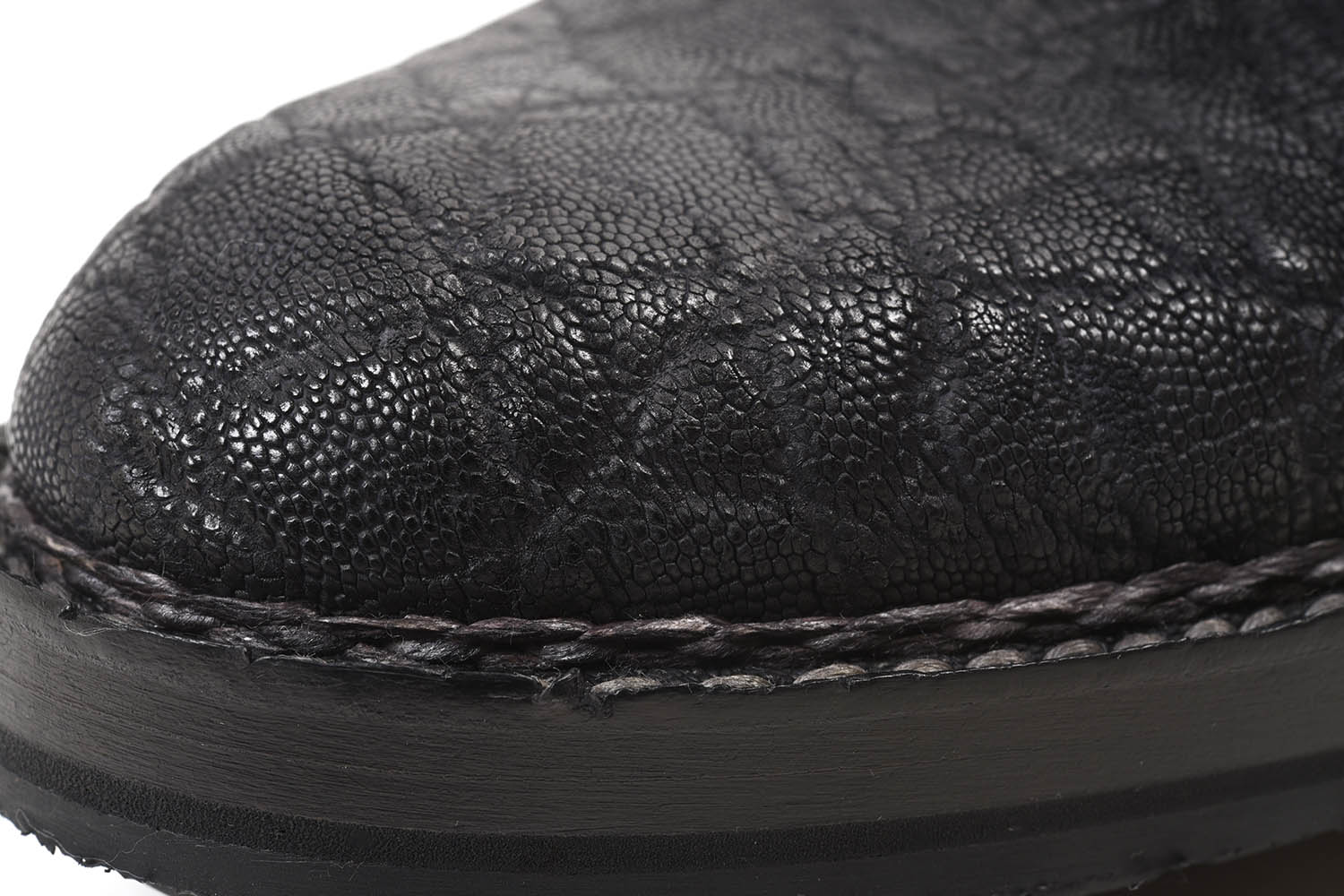 象革は、ワシントン条約(CITES)によって厳格に管理された希少レザー。市場に出回る量は非常に限られており、革靴に使用されること自体が珍しい素材です。