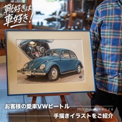 「靴好きは車好き!」お客様の愛車VWビートル PRO illustratorの手による、愛情たっぷりの手描きイラストをご紹介します。 😵 びっくらたまげました! 本日ご来店くださった新潟県内の常連様。以前から「愛車の初代ビートルをプロのイラストレーターさんに描いてもらっ ...