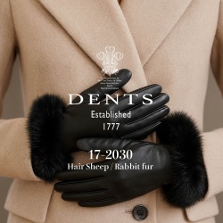 DENTS『17-2030 Hair Sheep / Rabbit fur』英国の気配を纏う、ラビットファーカフ付きブラックグローブ👩「イギリスを感じさせるエレガントなファー付きグローブが入荷したよ」。手首をぐるりと囲むラビットファーがふわっと暖かくて、シンプルなコートスタイルも一気にドレ ...