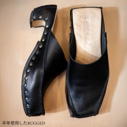 トリッペン RUGGED WAW BLACK のエイジング(約半年)レディースのウッドサンダル『トリッペン RUGGED WAW BLACK』。こちらはお客様が約半年ご愛用くださった実際のお写真です。革とウッド部分がどのように変化していくのか、ご参考いただければ幸いです。▲ 半年間で革が落 ...