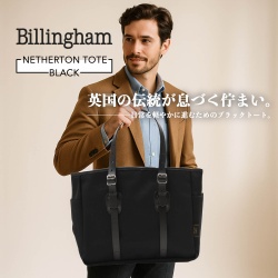 Billingham『NETHERTON TOTE BLACK』英国の伝統を日常に。雨にも強い、洗練のオールデイトート。🥸『通年を通してビジネスからデイリーまで使い倒せる定番スタイル』。ストームブロックキャンバスの軽さと雨に強い生地感、ブライドルレザーのきりっとした黒が、どんな装いに ...