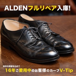 ALDEN 54411|16年の相棒、総リフレッシュ計画削れて、凹んで、でも美しい。修理で“もう一度、主役”へ。🙂ご購入から16年ご愛用いただいた「オールデン 54411 Vチップ(モディファイド/カーフ Black)」が修理で入庫しました。いやぁ、ここまで一緒に歩いた靴は、もはや“ ...
